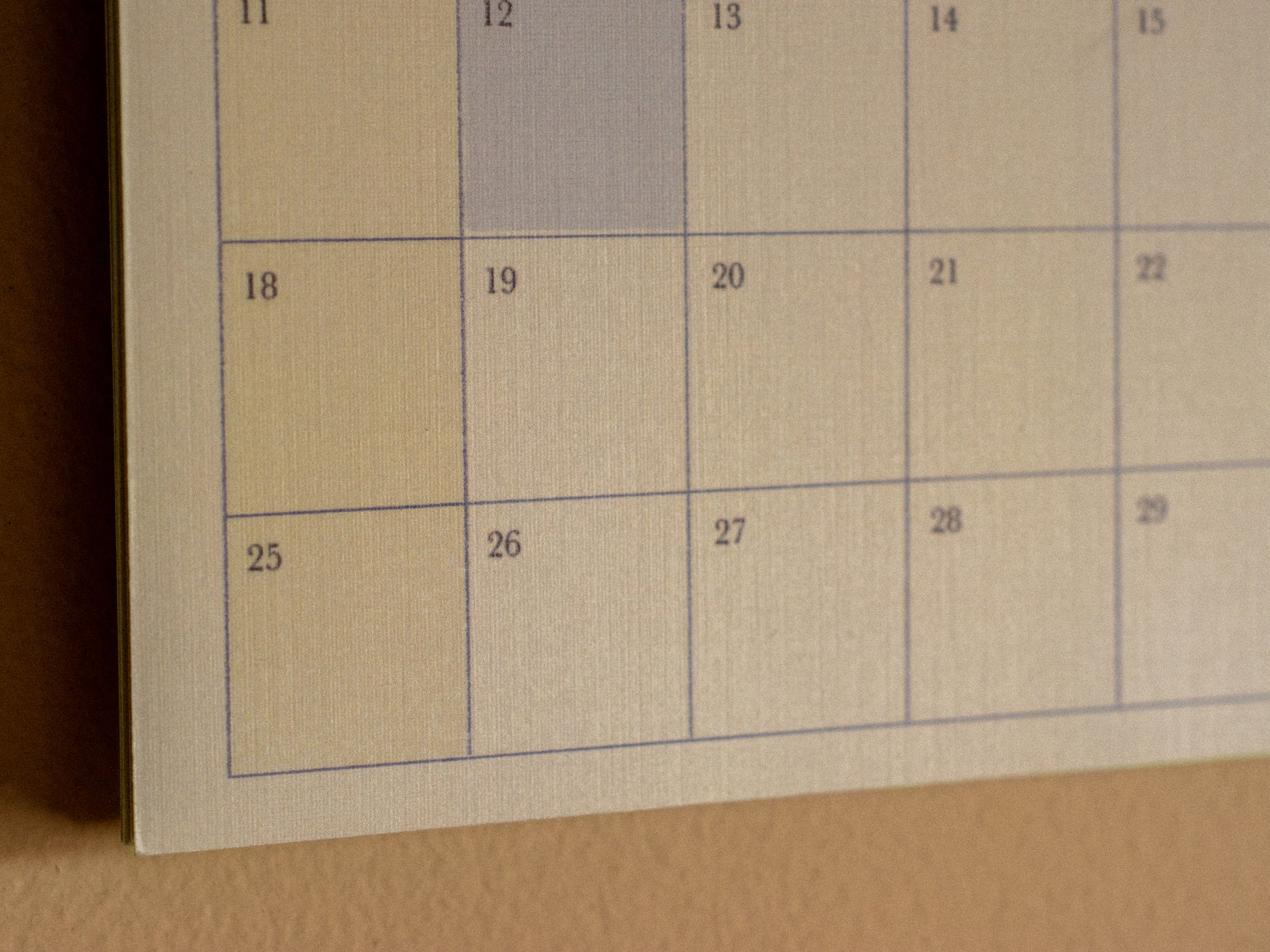 Este almanaque tamaño A4 está elaborado en papel lino de 270 gr, un material firme y con textura suave. Tiene anillado metálico que te permite pasar las hojas mes a mes sin necesidad de romperlas ni arrancarlas.